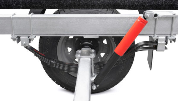 ● Рессорная подвеска (2 рессоры по 7 листов) с гидравлическими амортизаторами сохраняет стабильную плавность хода при разной загруженности прицепа.