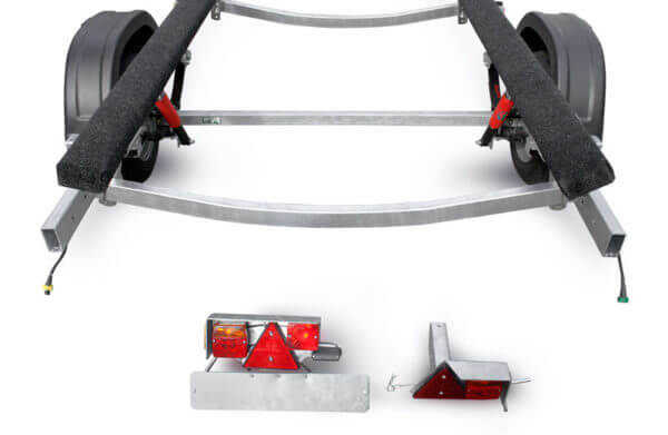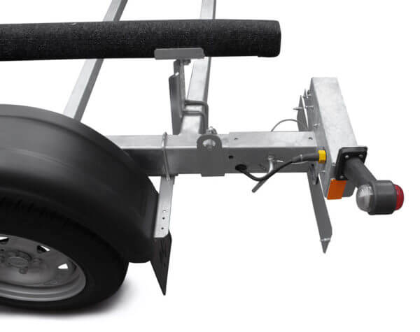 ● Усиленная оцинкованная стальная рама выполнена из замкнутого профиля, имеет большой запас прочности и позволяет уберечь жгут электропроводки от внешних повреждений по все длине прицепа. Изогнутая конструкция поперечин рамы обеспечивает максимально низкую посадку судна, что снижает центр тяжести и повышает устойчивость прицепа во время движения.